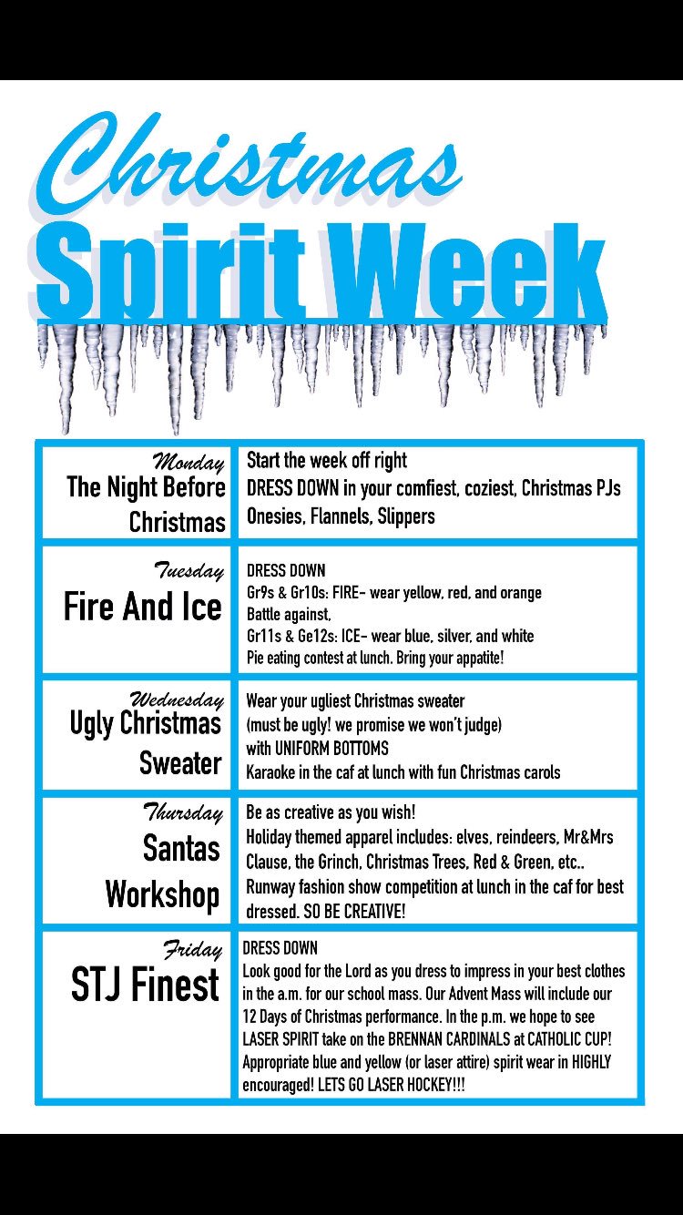I've been in charge of student council for about 7 years so we've had to come up with a lot of fun. I am sharing my favorite spirit week ideas and a free printable. Whether you incorporate these ideas for all of december or just steal a few to create lasting christmas eve traditions, you can't go wrong with these fun christmas activities. Spirit week ideas for busy offices. 10+ christmas spirit week ideas at work.compare prices and explore office christmas spirit week ideas at all the leading christmas online stores in united states: Austintown fitch will hold their 4th annual christmas themed spirit week, five days of christmas, december 17th through the 21st. Discovering a special plans has certainly never been much easier. The events should also not take too long to do. Engaging employees and encouraging participation for any event can be difficult; Jetzt eine riesige auswahl an gebrauchtmaschinen von zertifizierten händlern entdecken Ideas for christmas spirit week : You can even create specific hashtags that everyone can use. What i love about these spirit days is that they give direction, but are also broad which leaves room for imagination to dress up with what you already have access too.